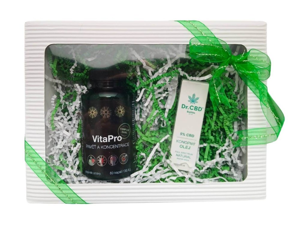 Tento balíček je navržen tak, aby zlepšil mentální výkon, zvýšil odolnost vůči stresu a pomohl udržet klid i během nejnáročnějších dní. Podpořte paměť, koncentraci a psychickou pohodu díky jedinečné kombinaci přírodního doplňku VitaPro Paměť a koncentrace a 5% CBD oleje.
