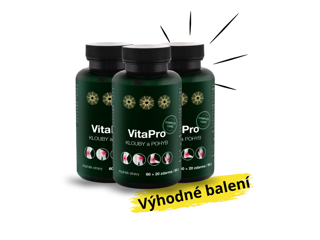 VitaPro Klouby a pohyb je doplněk stravy určený k doplnění jídelníčku o vybrané látky pro péči o pohybový aparát. Skvěle zapadne do režimu aktivních lidí, sportovců i těch, kdo chtějí věnovat svému pohybu každodenní pozornost.