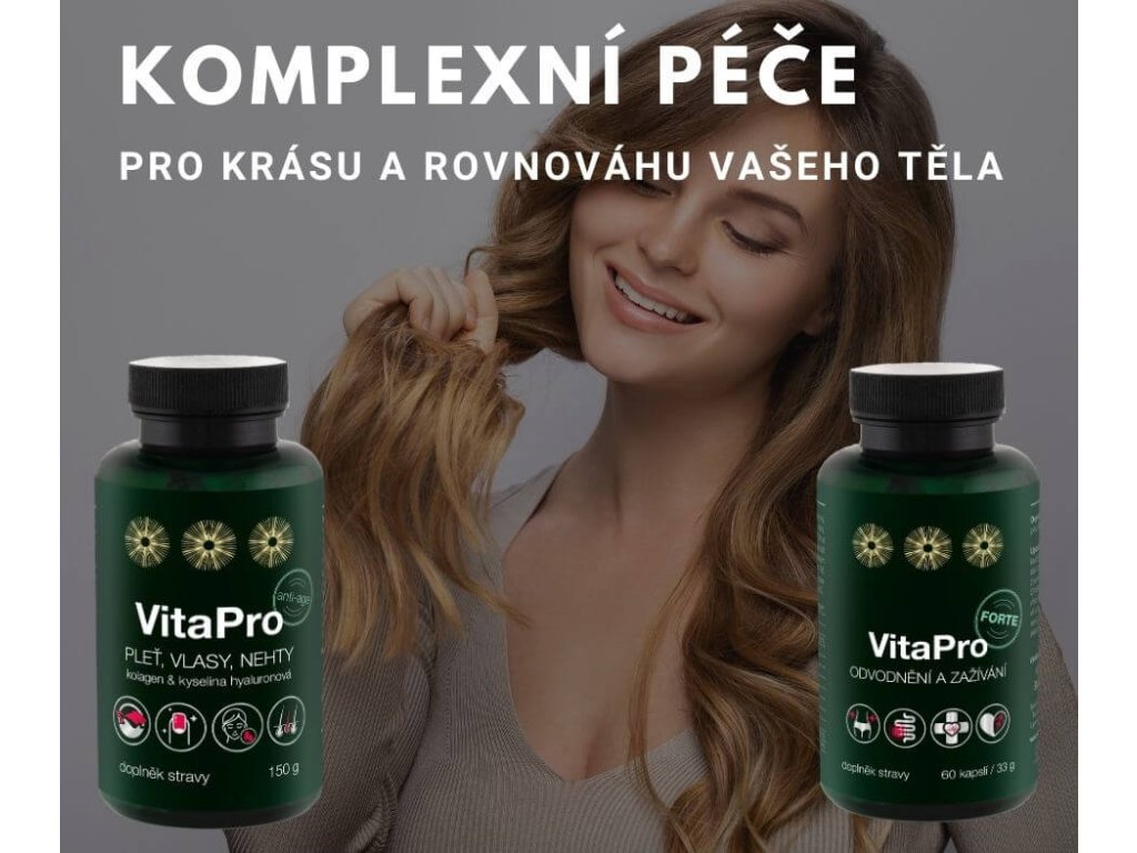 Zvýhodněná sada pro krásu: Kolagen VitaPro na pleť, vlasy a nehty + VitaPro Odvodnění a zažívání. Podpora zdraví a krásy v jednom balení. Ideální pro každou ženu.