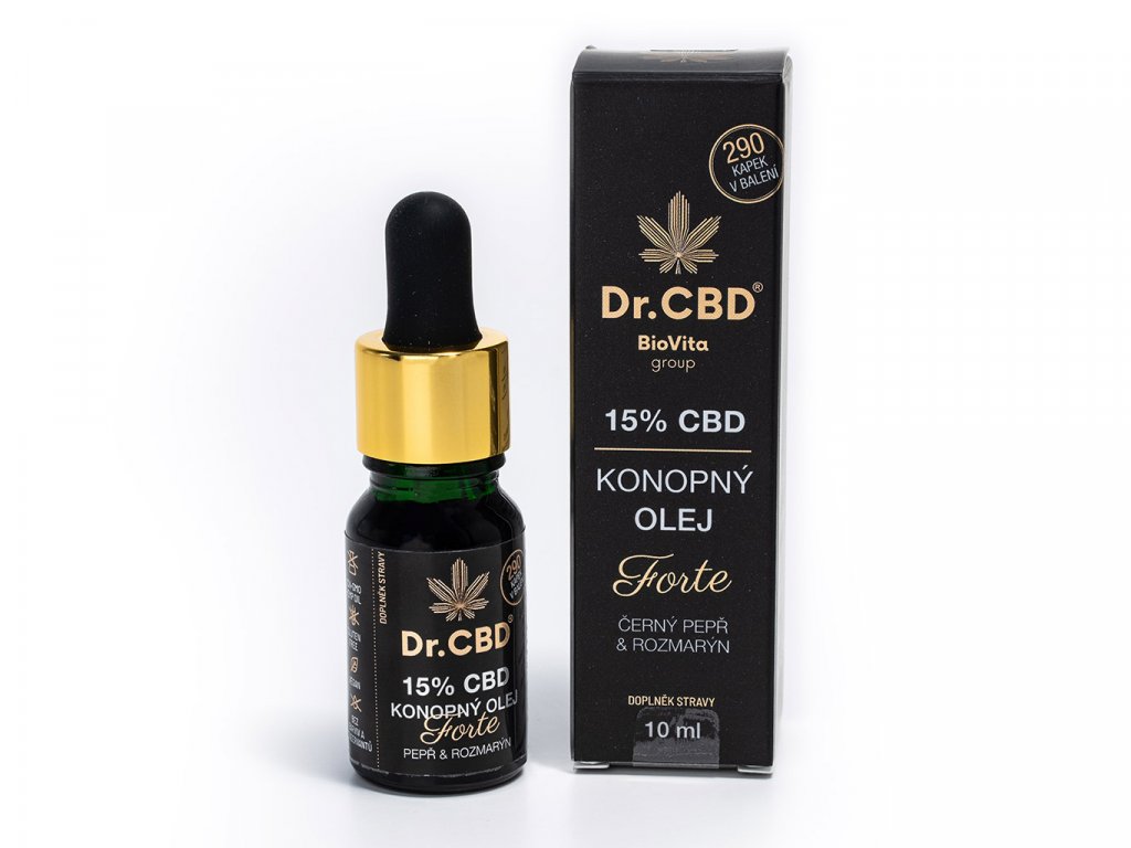 Konopný olej Forte 15% CBD černý pepř a rozmarýn, 10 ml